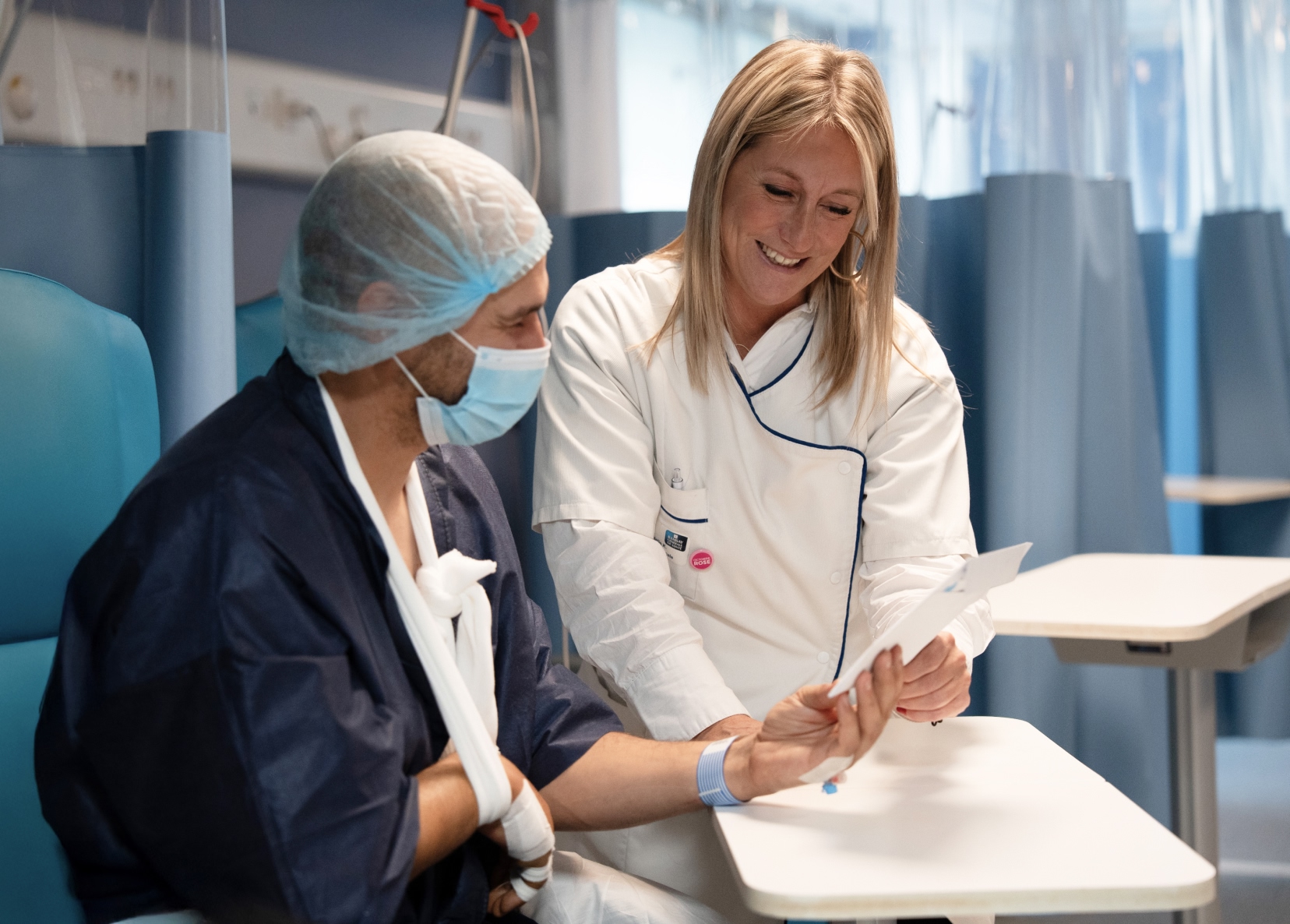 Vous serez conduit au bloc opératoire où l’équipe chirurgicale, composée du chirurgien, de l’anesthésiste, de la panseuse et de l’aide opératoire, prendra en charge votre cas. Si vous le souhaitez, l’équipe médicale vous tiendra informé à tout moment de l’avancée de l’intervention.
